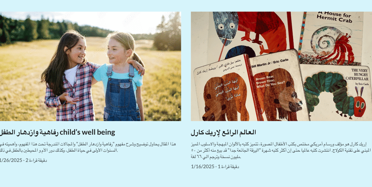 استكشف المقالات، ملخصات الكتب التربوية، و العديد من المصادر المتعلقة بنمو و تربية الأطفال